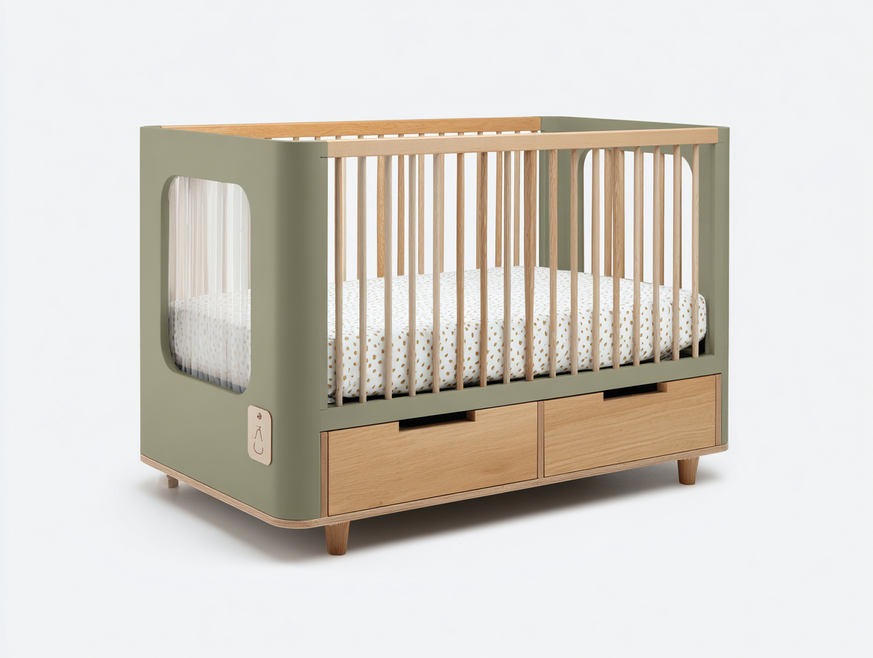 Culla-legno MDF-130x75x95 cm-verde oliva-legno naturale-design moderno cameretta