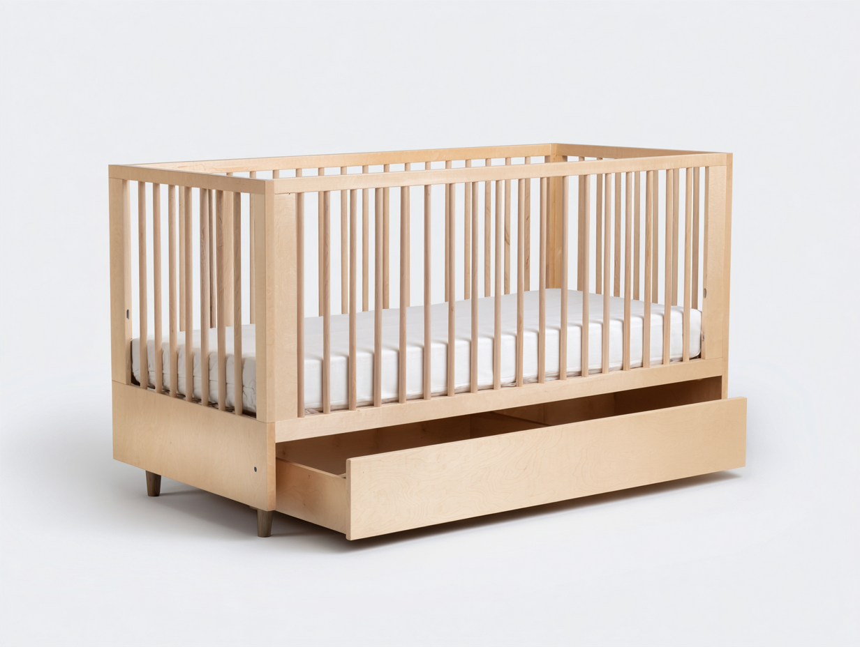 Culla-legno naturale-135x75x95 cm-marrone-design moderno per cameretta