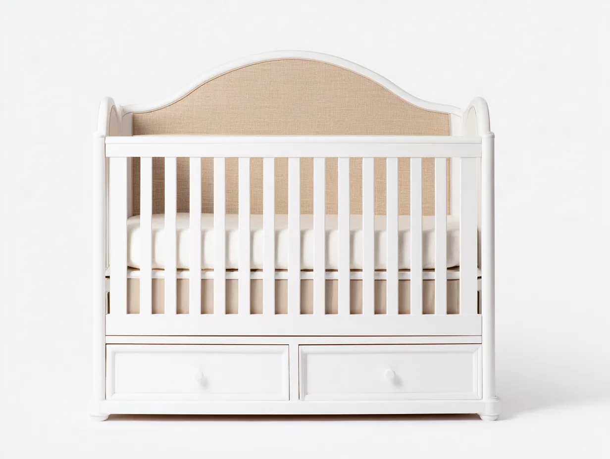 Questa culla in legno è progettata per creare uno spazio sicuro e confortevole dedicato al riposo del bambino. Il design con linee morbide e testiera arcuata dona un aspetto elegante e armonioso alla cameretta. Il colore bianco permette di abbinarla facilmente a diversi stili di arredamento domestico.