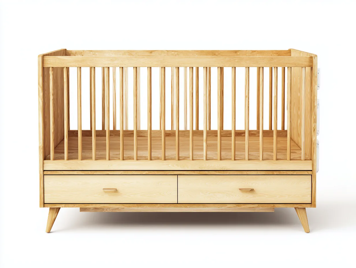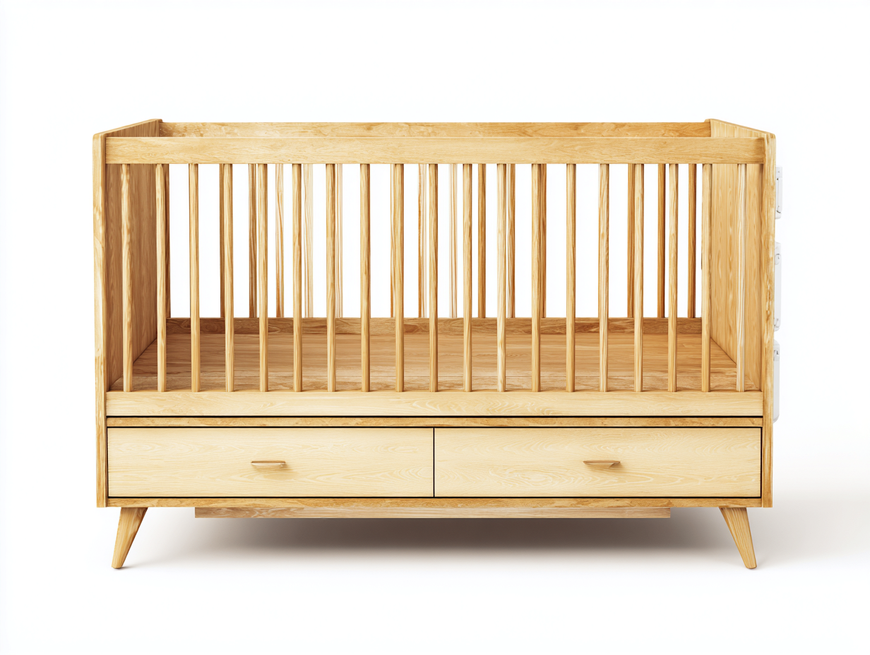 La struttura con sponde verticali crea uno spazio protetto per il riposo del bambino. Il design equilibrato consente di posizionare la culla in modo armonioso all'interno della cameretta. La base stabile sostiene il materasso e contribuisce alla sicurezza complessiva della struttura.
