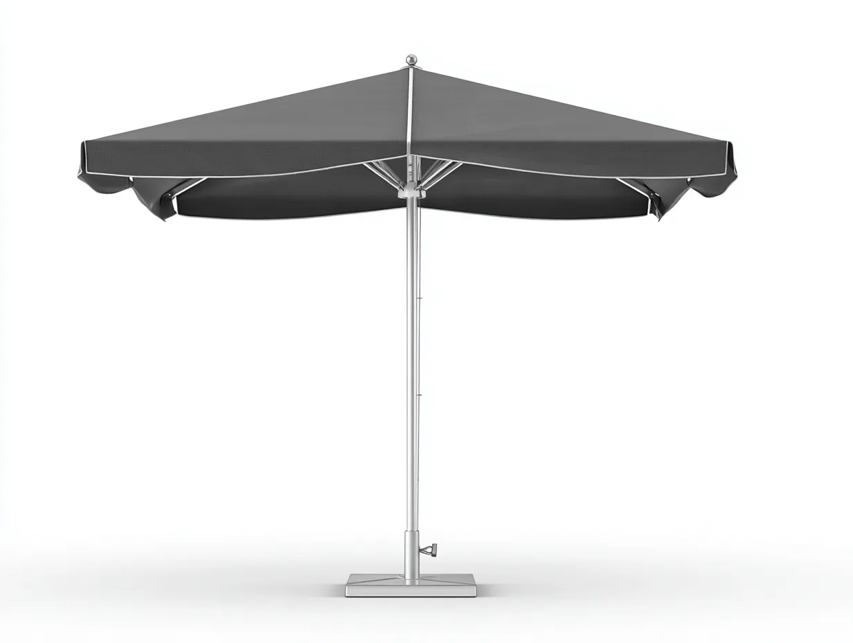 Questo ombrellone da giardino con palo centrale è progettato per offrire una copertura ombreggiante negli spazi esterni. Il telo color grigio scuro crea un aspetto elegante e discreto che si integra facilmente con arredi da giardino moderni.